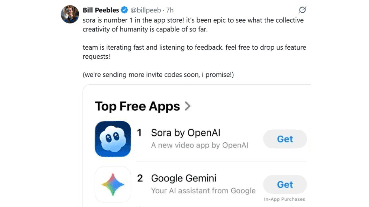9월 30일 출시된 오픈AI의 AI 영상 생성 앱 ‘소라’가 높은 초기 성적을 기록하며 화제가 되고 있어요. 소라는 사용자가 텍스트 프롬프트를 입력하면 짧은 영상을 자동 생성해주는 앱으로, 이를 틱톡처럼 앱 내 피드에 공유하고, 추천 알고리즘을 바탕으로 다른 사람들의 영상도 재생할 수 있는 SNS 플랫폼처럼 출시됐어요. 소라는 출시 5일 만에 100만 다운로드를 돌파하며 ‘클로드’나 ‘코파일럿’은 물론, 자사의 챗GPT도 뛰어넘는 초기 성적을 기록했어요. 특히, 소라는 현재 미국과 캐나다에서만 설치가 가능하며, 초대 코드를 받아야 접근할 수 있음에도 불구하고 흥행했다는 점에서 더욱 주목받고 있어요.