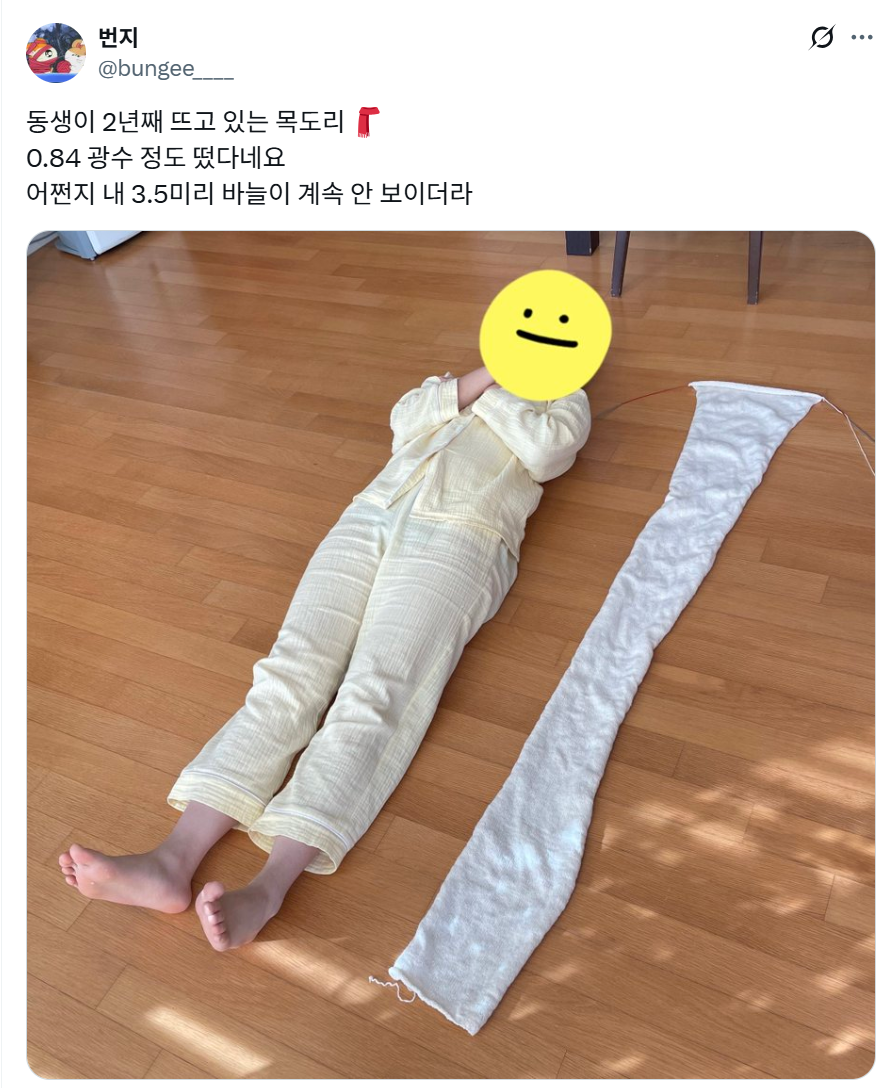 🐧오늘 뉴스레터의 제목이 궁금하시다면? 뜨개질 유튜버인 ‘바늘이야기 김대리’의 3년 전 영상에 달린 댓글이 밈화되어 퍼지고 있어요. 목도리 뜨기에 대해 설명하고 있는 해당 영상에 달린 ‘근데 목도리 길이가 190cm가 진짜 맞나요…? 이광수를 목에 두른다고 생각하니까 좀 의아해서요…라는 댓글이 이번 밈의 주인공이에요. 아무리 190cm라지만 다소 뜬금없이 등장한 이광수를 목에 두른다는 엉뚱한 발상으로 인해 해당 댓글의 캡처가 X(구 트위터)를 중심으로 널리 퍼지며, 1광수 = 190cm라는 단위가 생겼어요. 주로 ‘오늘 0.1광수(19cm)를 떴다’는 식으로 단위처럼 뜨개질하는 사람들 사이에서 단위처럼 사용하거나, 190cm 목도리를 광수목도리라고 하는 식으로 사용돼요(190cm 목도리는 일반 목도리 중에서는 비교적 긴 편이라고 하네요). 이 밈이 워낙 널리 퍼지다보니, 최근 ‘홍보하러 온 건 맞는데’에서 이광수도 해당 밈을 들어봤다고 말했어요. 사실 본인의 실제 키는 193cm지만 평소에 키를 좀 작게 187cm라고 말해왔다는 비화도 밝혀졌지만, 이미 190cm로 굳어진 단위이다보니 변화하지는 않을 것 같아요.